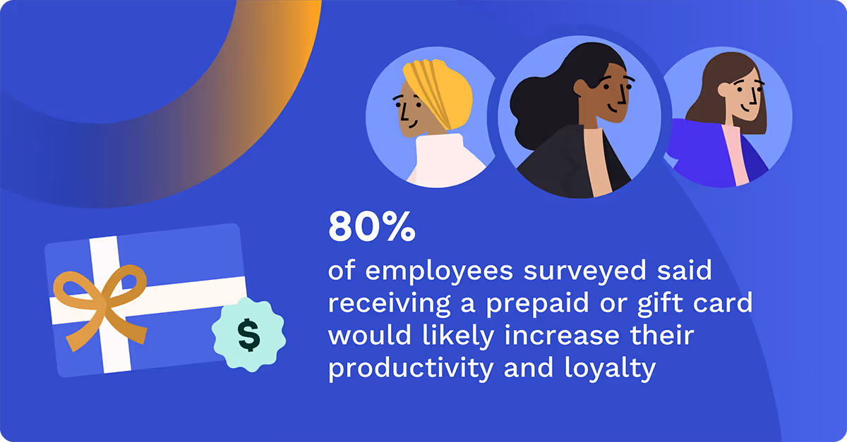 Interestingly, more than 80% of respondents said that getting a prepaid or gift card would increase productivity and loyalty.