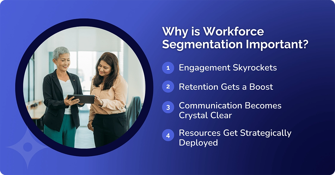 Workforce segmentation is important because it personalizes HR initiatives, leading to a more engaged and productive workforce. By understanding employee segments, you can allocate resources strategically and address their unique needs.