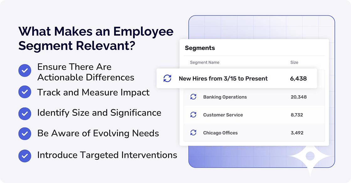 However, for employee segments to be relevant, there are certain key attributes that they need to meet. One of these is that they need to be accessible to employees so that you can target them through well-established, existing internal communication channels.