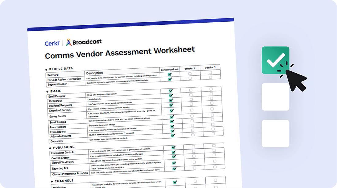 Cerkl Broadcast is an internal communication platform designed to intelligently deliver the right content to the right employee at the right time - across email, intranet, and mobile. Unlike platforms that rely solely on audience segmentation or manual distribution, Cerkl Broadcast uses AI-powered personalization to scale 1:1 communication without creating more work for internal comms teams.