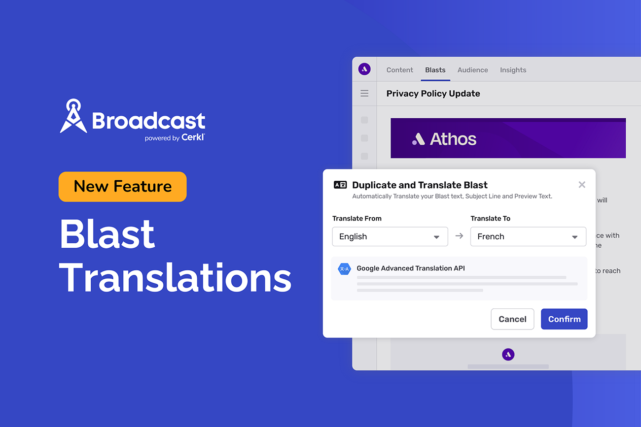 Streamline your workflow with Cerkl's new Broadcast Translation feature. Translate email Blasts into 104 languages easily and save time.