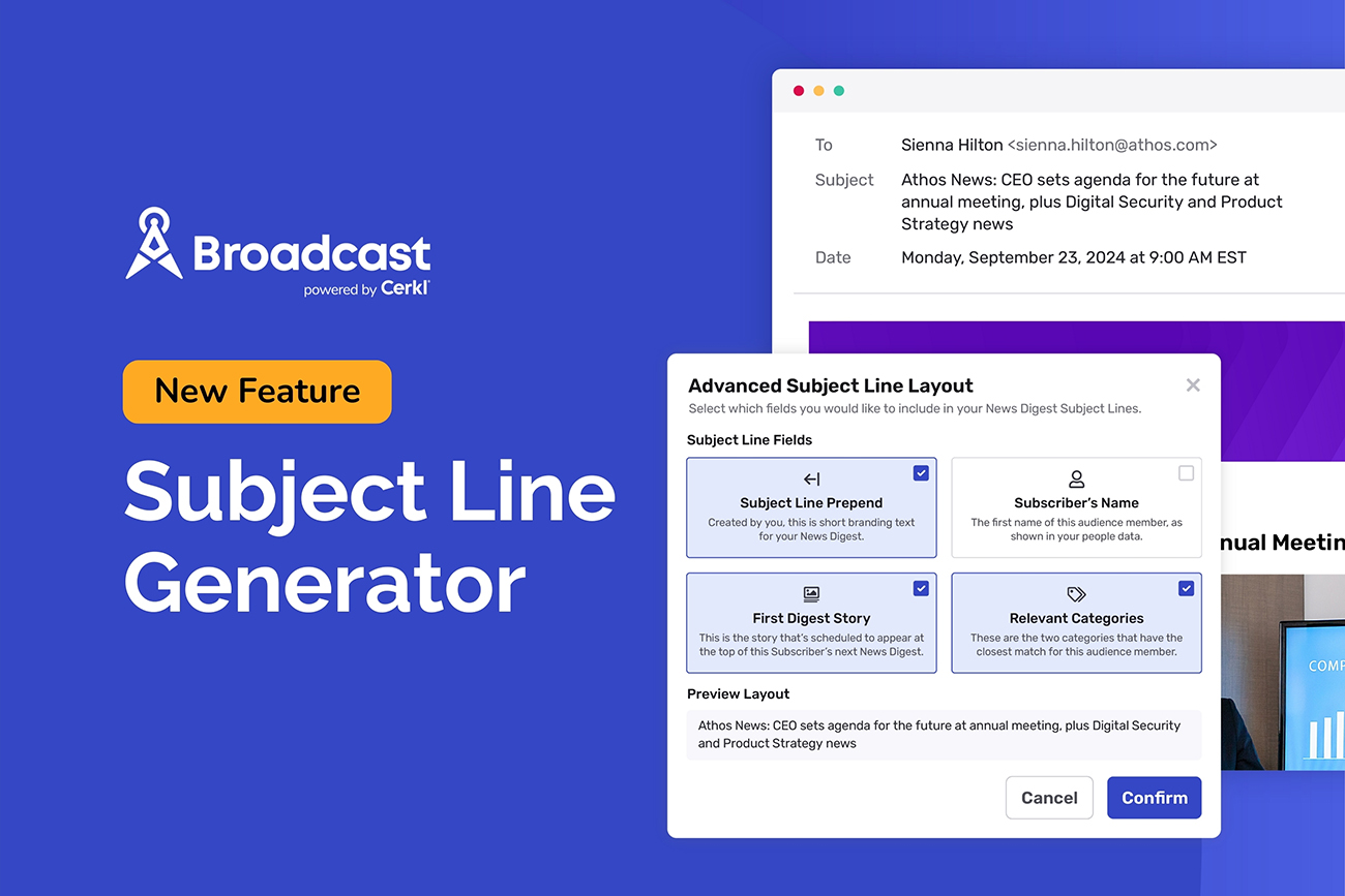 Take control of your internal communications with Cerkl’s new Subject Line Generator for News Digest. It’s a powerful enhancement. Don’t miss out.