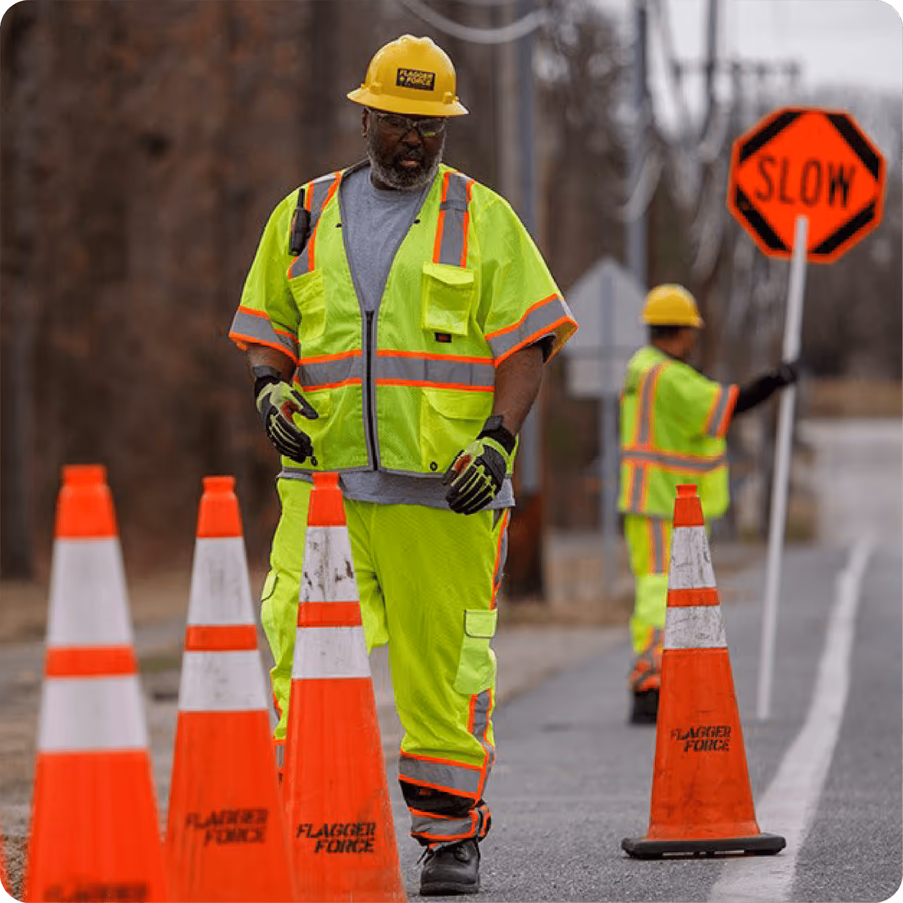 Flagger Force is a traffic control company committed to education, innovation, and technology. They aim to improve work zone safety for every motorist, pedestrian, and worker traversing our roadways. The company manages over 1,000 job sites daily throughout the eastern United States.