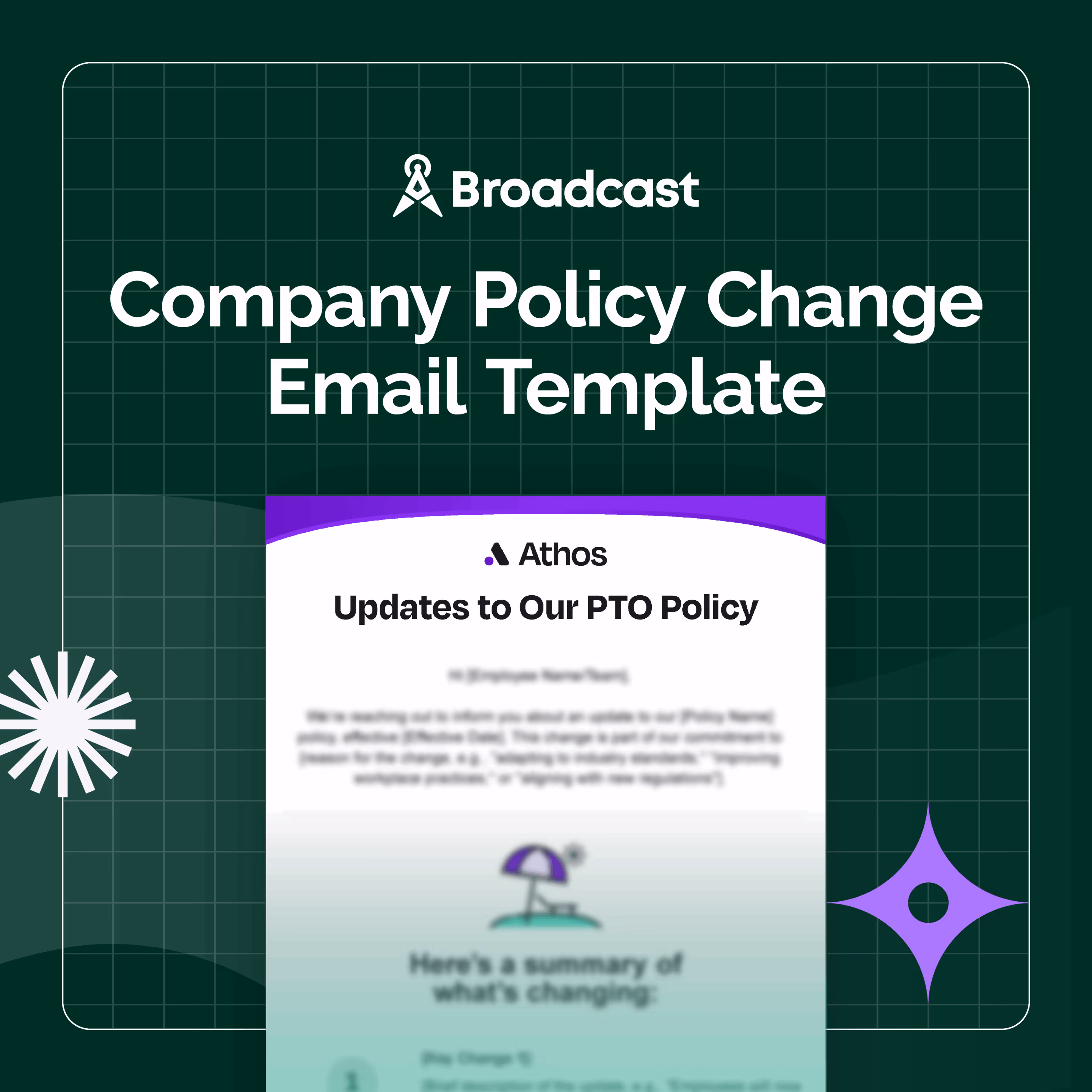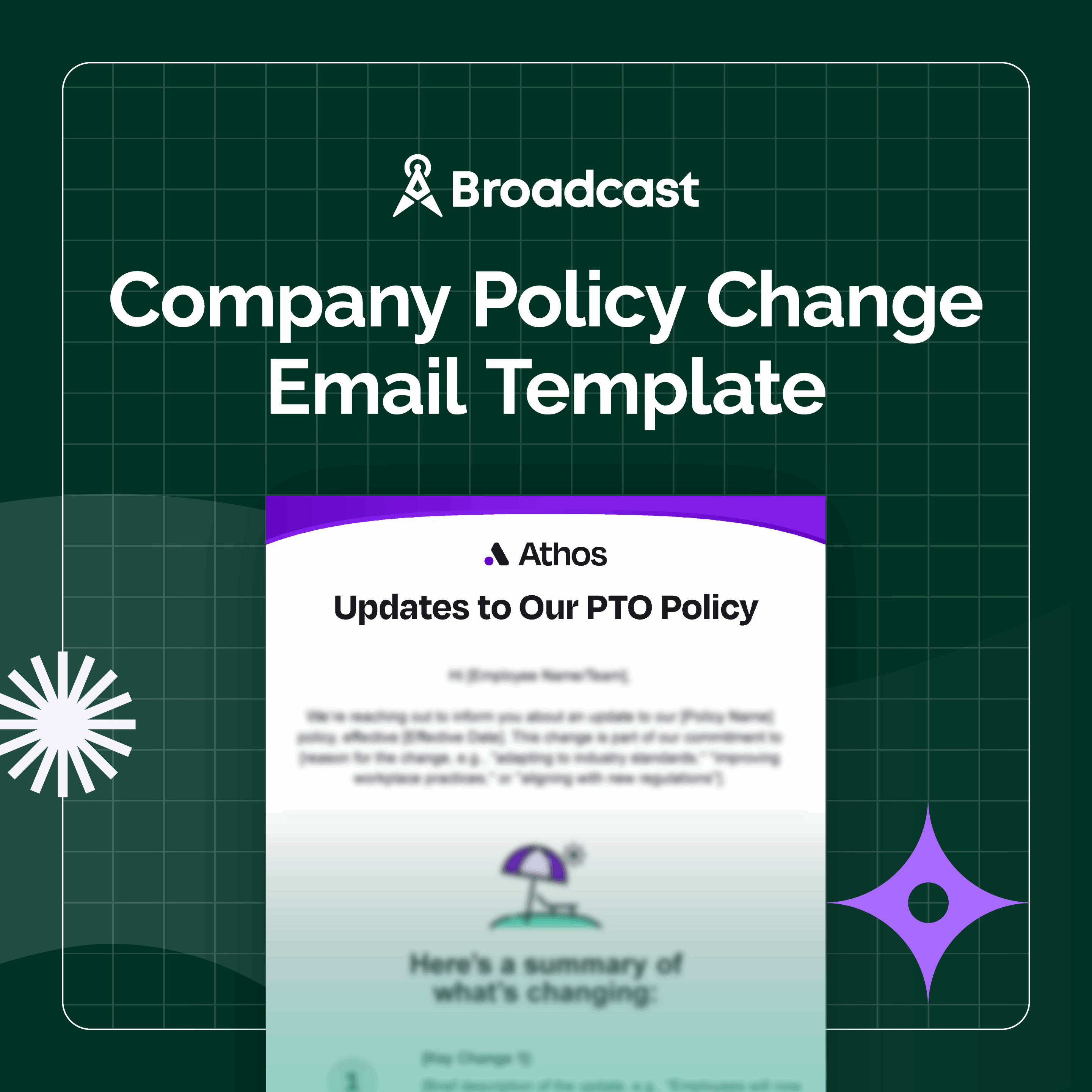 A well-structured company policy update announcement email template will streamline this communication, ensuring all essential details are included in a professional, concise, and accessible format. This, in turn, will ensure employees feel informed, respected, and aligned with organizational goals. By providing clarity on the reasons behind the change and its benefits, you can confidently foster a sense of inclusion and trust throughout your workforce.